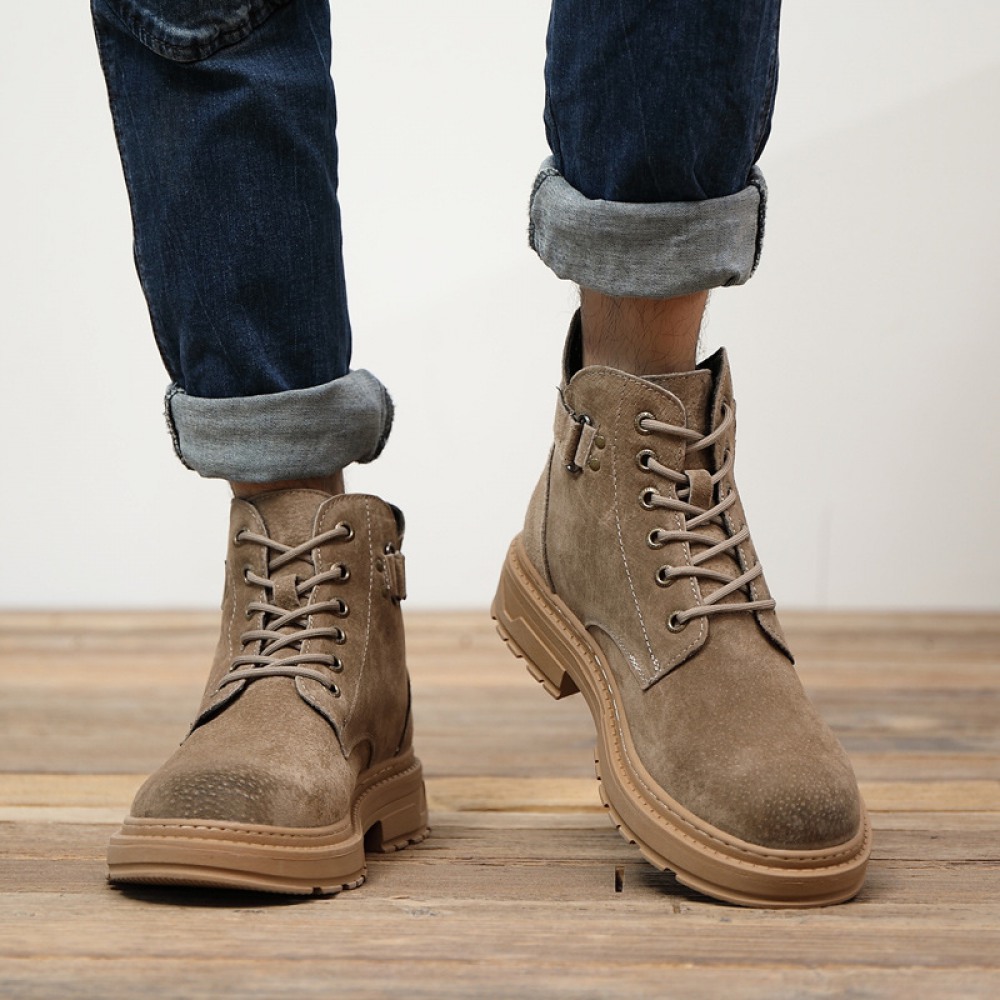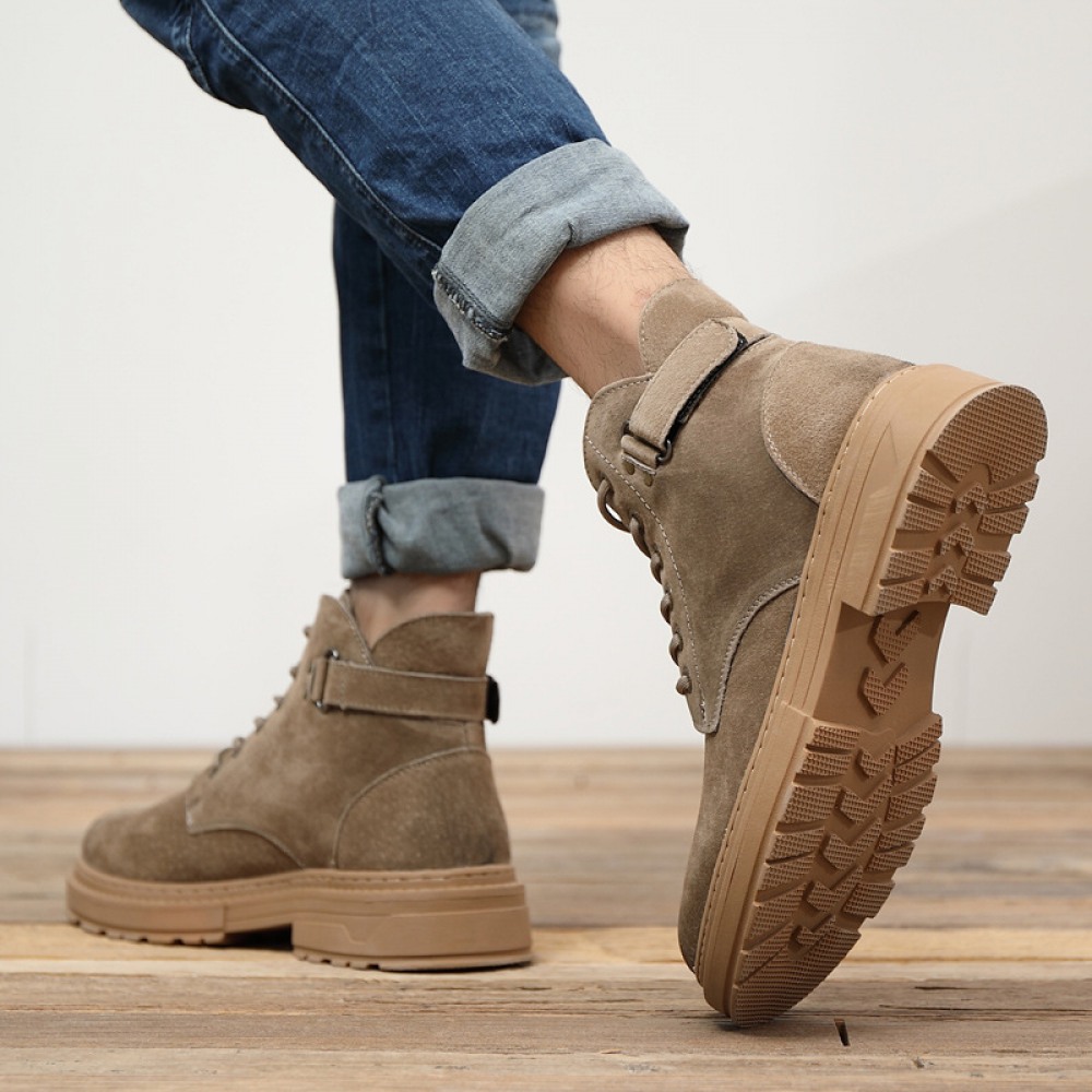 Fall Winter Men's Trendy Tooling Shoes Round Toe Strap Leather Men's Boots Explosive Desert Boots Wolf Boots